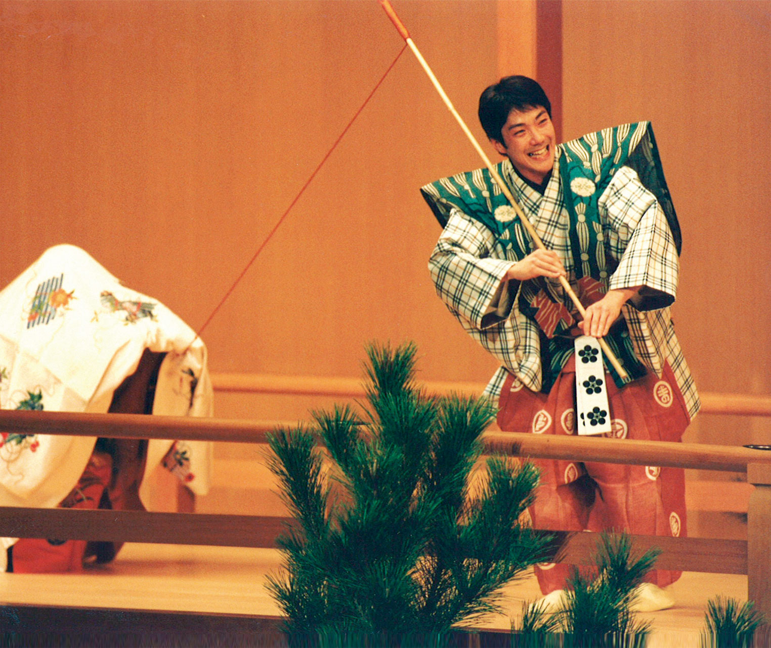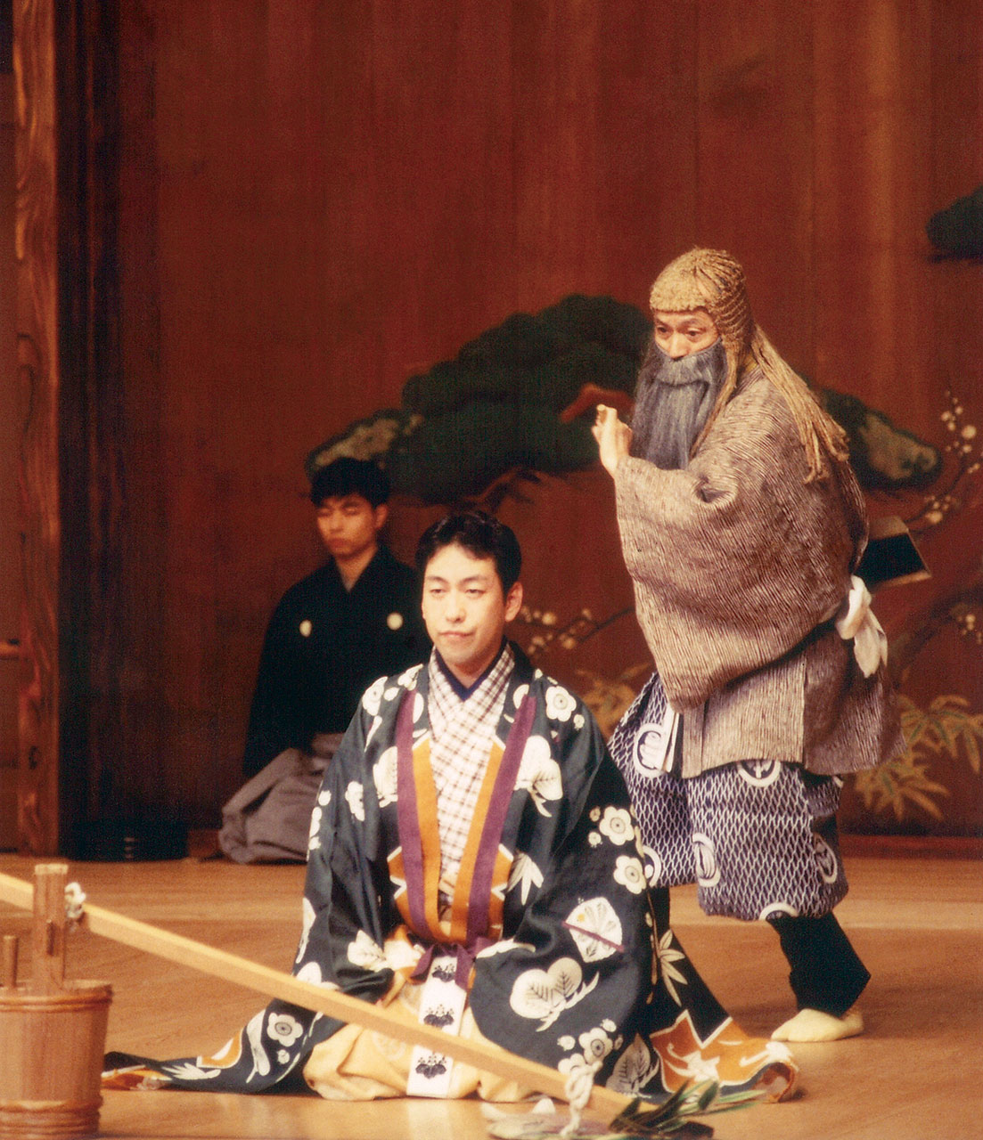 舟に乗っている様子が棹一本で表現されるなど、狂言のマイムとしての面白さがあります。舅と聟の掛け合いの妙をお楽しみください。