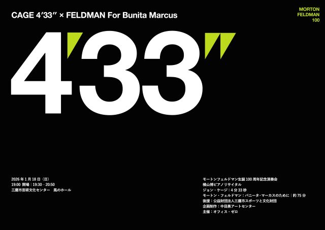 2026年1月18日(日) | 音楽 | モートン・フェルドマン生誕100周年記念演奏会 横山博ピアノリサイタル | ![]() | 風のホール芸術文化センター | 有料 |